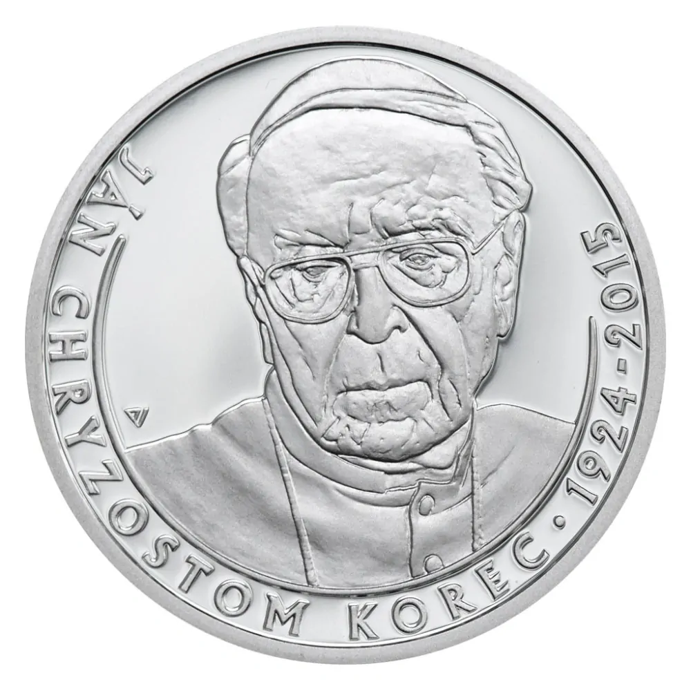 Stříbrná 10 EUR mince vydaná ke 100. výročí narození Jána Chryzostom Koreca.