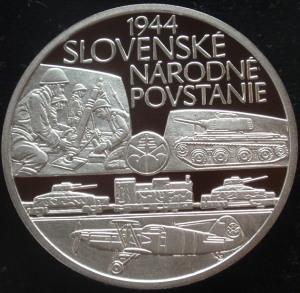 Stříbrná 10 EUR mince vydaná ke 80.výročí Slovenského národního povstání.