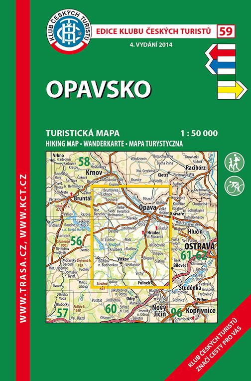 Mapa č. 59 Opavsko. Na Opavsku je dobře zachovalá obranná pevnostní linie těžkých pěchotních srubů i lehkých kulometných pevnůstek (řopíků), které byly budovány od poloviny 30. let 20. století.