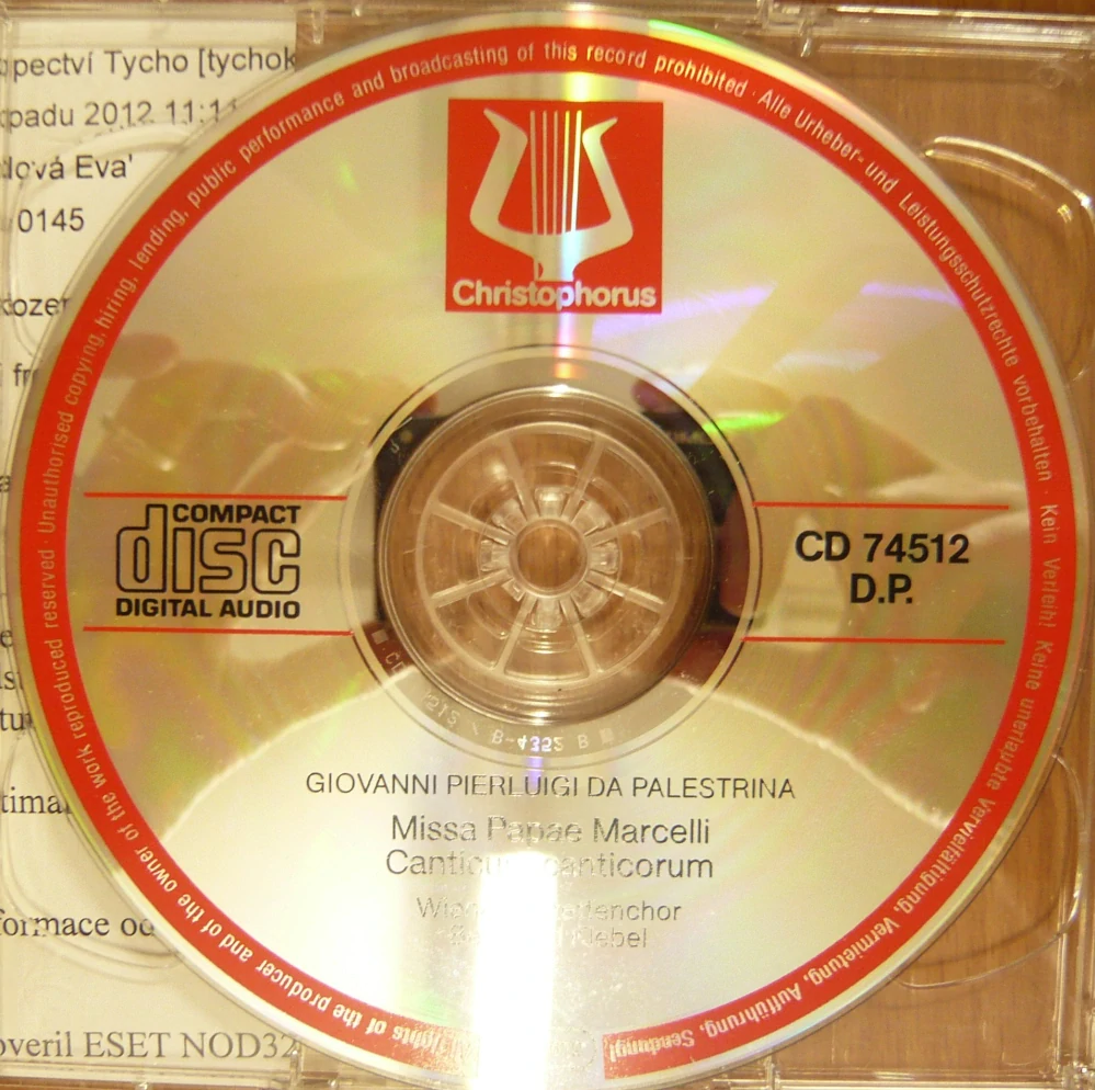 G. PIERLUIGI DA PALESTRINA: MISSA PAPAE MARCELLI, CANTICUM CANTICORUM/CD(BEZ BOOKLETU)skladem69 Kč/ ks57 Kč bez DPH
