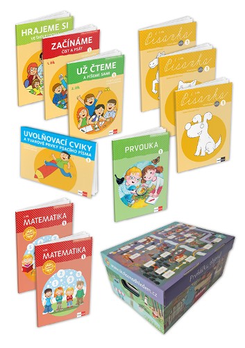 Startovací balíček obsahuje všechny základní materiály, které budou vaši žáci během prvního školního roku potřebovat. V balíčku najdete kompletní sadu učebnic a pracovních sešitů pro český jazyk vyučovaný genetickou metodou, matematiku podle metody prof. Hejného a pracovní učebnici k prvouce. Součástí balíčku jsou materiály pro postupný rozvoj čtení a psaní, písanky pro nácvik vázaného písma i ilustrovaná krabice Učím s APU.